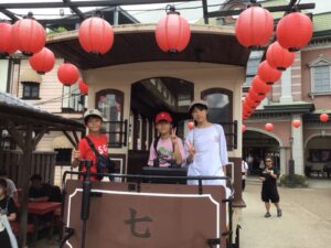 子どもたちは修学旅行最後の見学地、東映太秦映画村に到着しました。