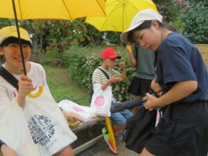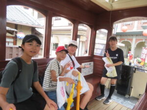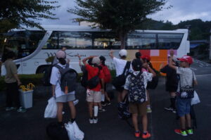 お世話になった皆さん、粥見の友だちに手を振ります。