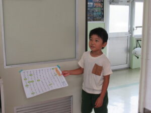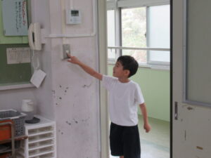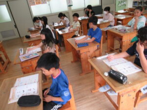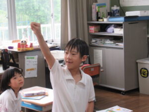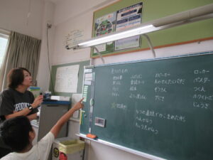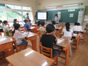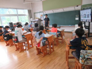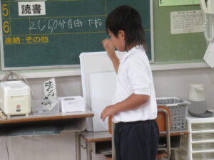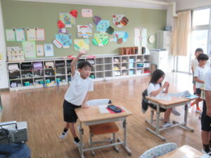 家庭科の授業でした、「よしず」や「サーキュレーター」について意見を出していたので、夏を快適に過ごすための学習かな?と想像しました。