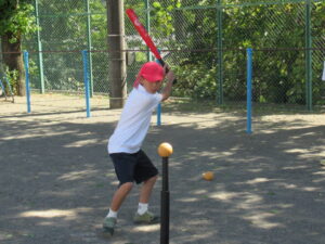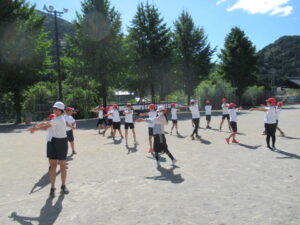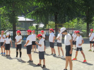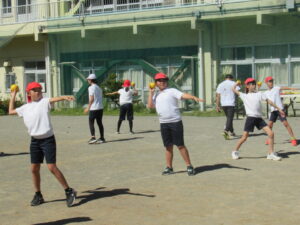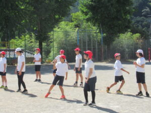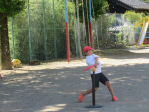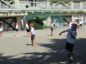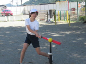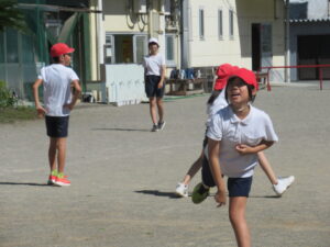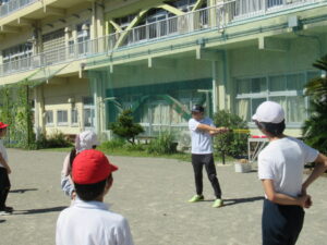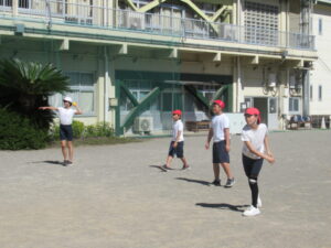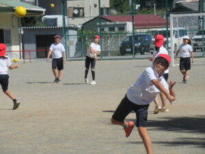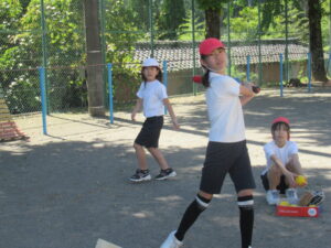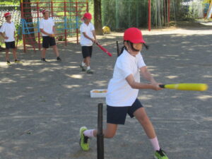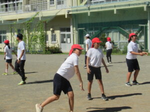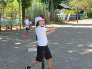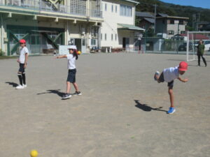 5・6年が、体育の時間にベースボール型ゲームの練習をしていました。