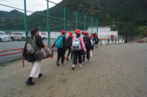 まずは、粥見小学校の友だちと記念写真をパチリ。