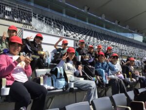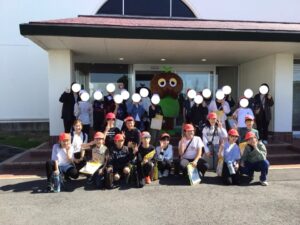 まずは、粥見小学校の友だちと記念写真をパチリ。