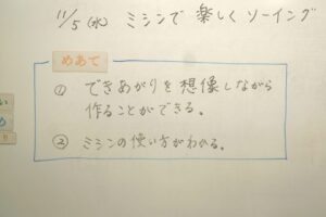 家庭科の時間に、ミシンを使ってトートバック作りをしていました。