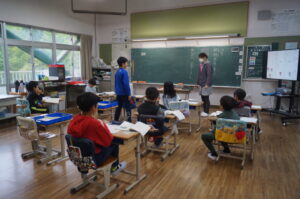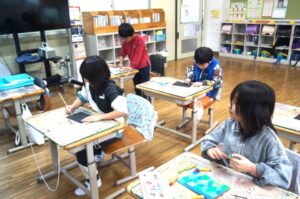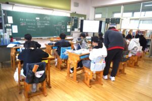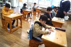 総合的な学習の時間。みえ松阪マラソンのメッセージに取り組んでいました。