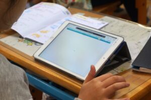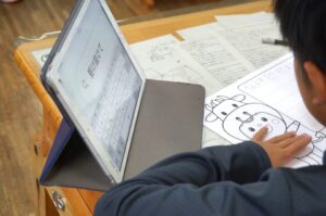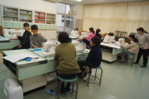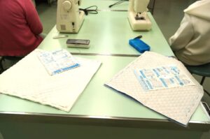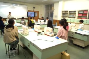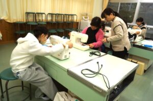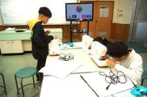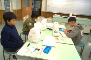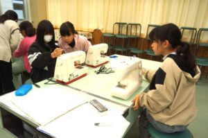家庭科の時間に、ミシンを使ってトートバック作りをしていました。