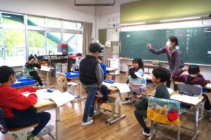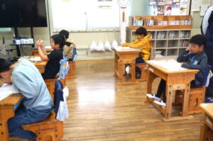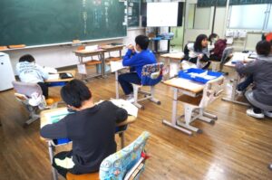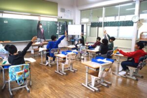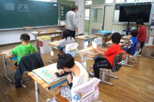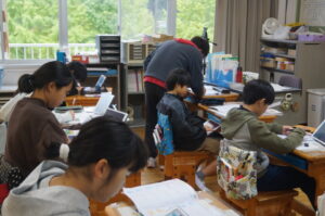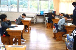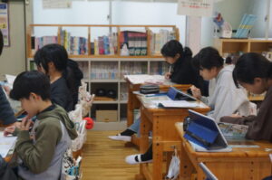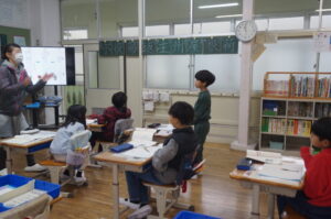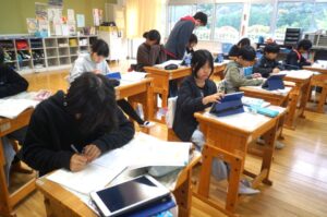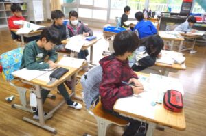 総合的な学習の時間。みえ松阪マラソンのメッセージに取り組んでいました。