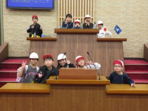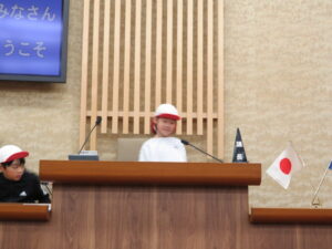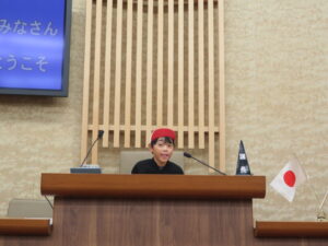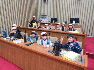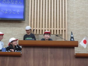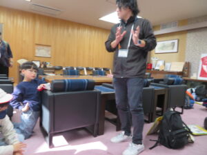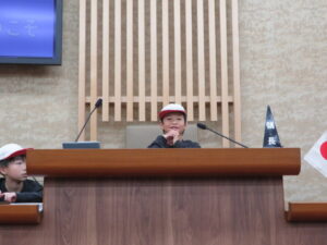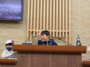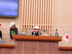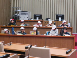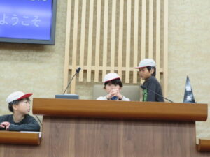 本会議場では市議会議員の座席に座ってお話を聞き、議員さんのように指定席に立って質問するなど、貴重な体験をさせていただきました。