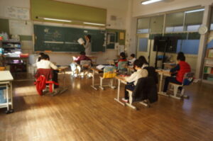 3年生は算数の時間でした。分数の学習をがんばっていました。
