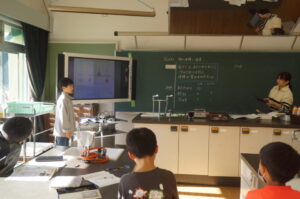 4年生は理科の「物の体積と温度」についての実験に取り組んでいました。