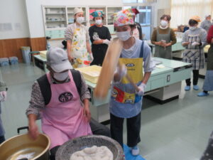 事前にもち米を蒸したり、ついたりして丸餅を作っていただいています。