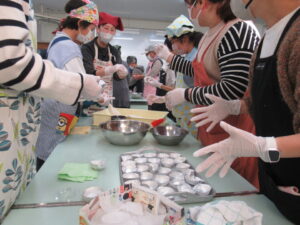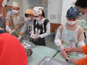 また丸餅を丸めていきます。だんだんうまくなっています。