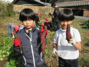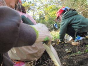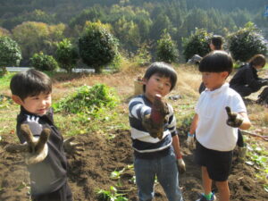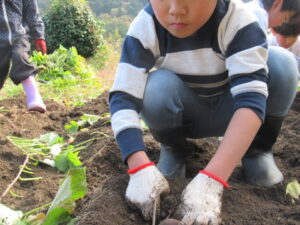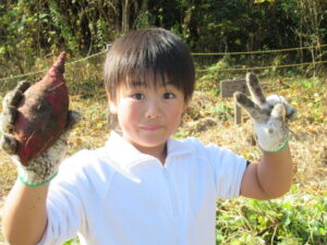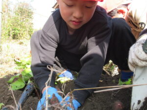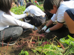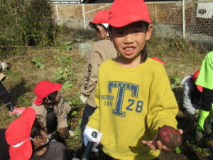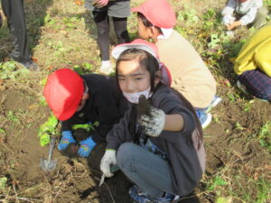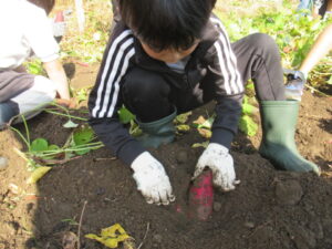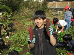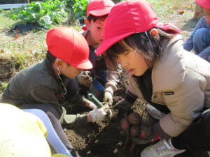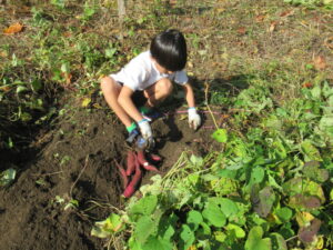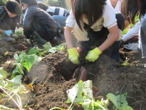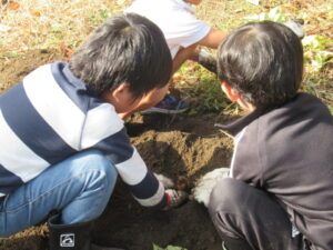 少しづつ、いもを掘り当てる子どもたちが出てきました。