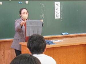 先週金曜日に、本居宣長記念館の学芸員さんたちに来ていただき出前授業をしていただきました。