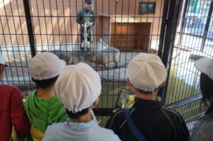 最後に、エサやり体験をさせてもらいます。