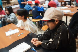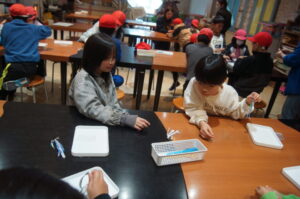 続いて、紫外線で色が変わるキーホルダーづくりをさせてもらいます。