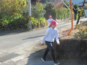 5・6年生は、学校の運動場を大きく2周し、400mを走ってゴールとなります。