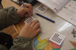 算数の九九を使った問題に取り組んでいました。
