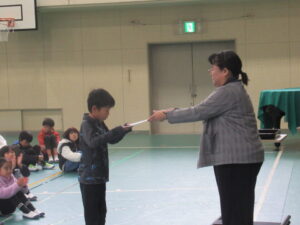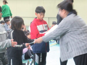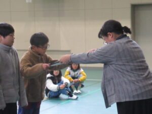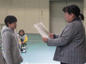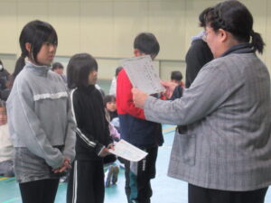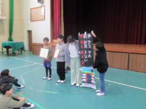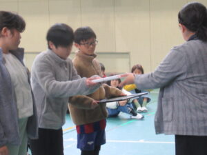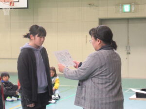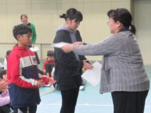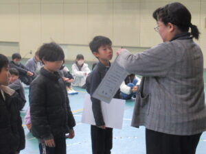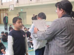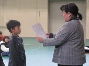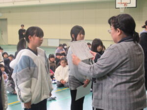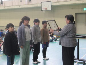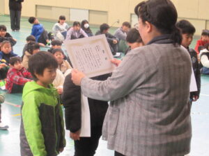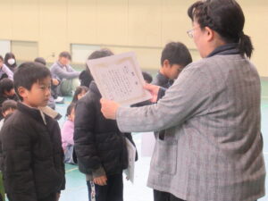 冬休み集会の後に、学校から募集した作品の表彰式を行いました。
