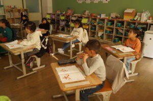 1年生 国語 書写 とめ・はね・はらい の学習をしていました。