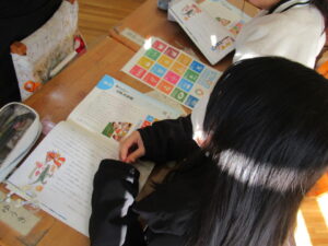 「わたしはあかねこ」「みっちときりー」という2つの絵本を使っての学習でした。ありのままの自分を表現できることの大切さや、まわりもありのままを認めることの大切さについて考えていました。