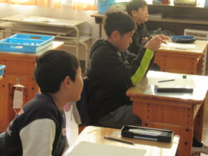 障害がある人や様々な年齢。また外国人にとっても生活しやすい社会の工夫について考えていました。知っていることやタブレットで調べたことを交流し合っていました。