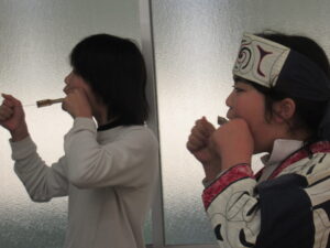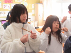 子どもたちが夢中になったのは、アイヌ民族に伝わる竹製の口琴、ムックリです。
