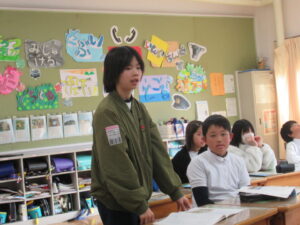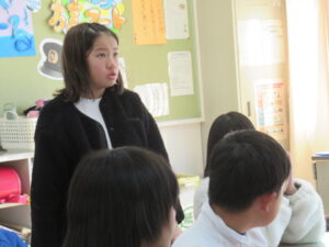 アイヌ語のあいさつや、現代にも続くアイヌ語源の言葉についても学びました。シシャモやラッコ、トナカイやコンブもその語源はアイヌ語ということで子どもたちも驚いていました。