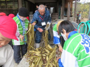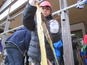 ラストスパートです。「熱い熱い」といいながらも子どもたちは皮むきに夢中です。