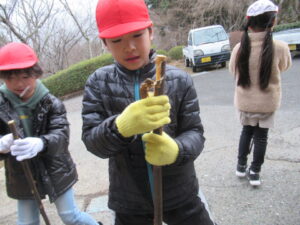 【3年】深野和紙:コウゾ・ミツマタ皮剥ぎ体験