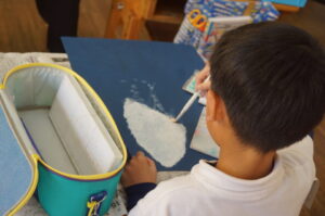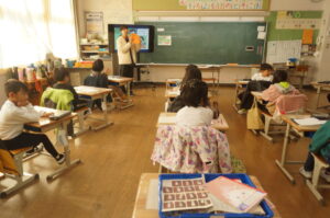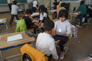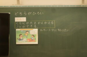 1年生は算数で「どちらがひろい」という学習をしていました。