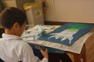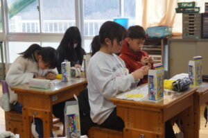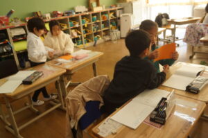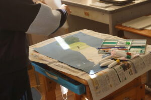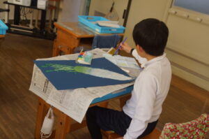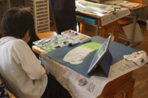 4年生は、最近収穫した「大根の絵」に取り組んでいました。