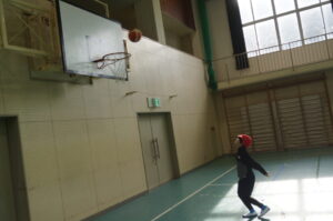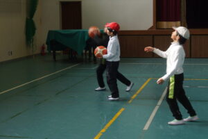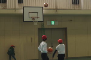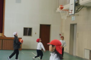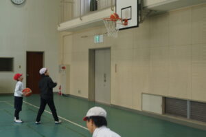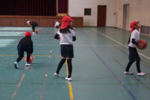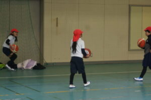 3年生は体育で「バスケットボール」の練習です。