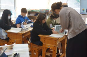 2年生は音楽で、卒業式に歌う「ビリーブ」の練習です。