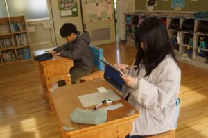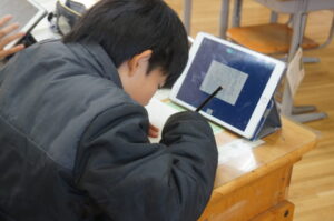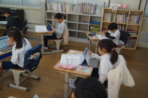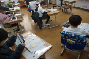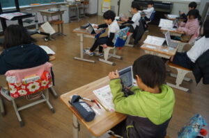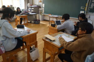 5年生は国語で作文を書いていました。