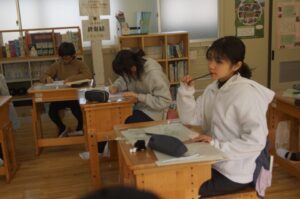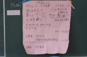 6年生は、卒業に向けメッセージを書いていました。