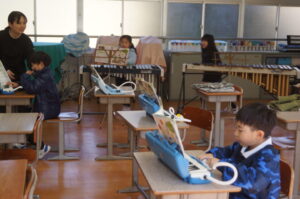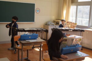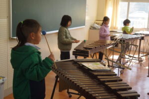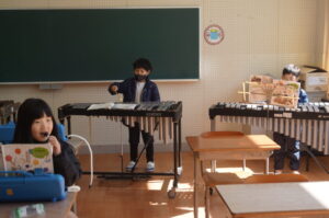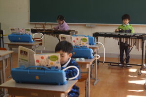 1年生は音楽。合奏の練習をしていました。