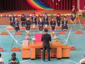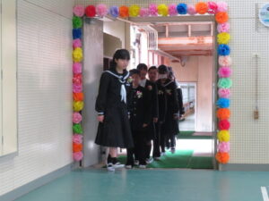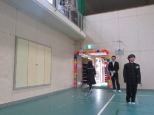 来賓の方々、お家の方、教職員、在校生が見守る中、堂々とした入場です。