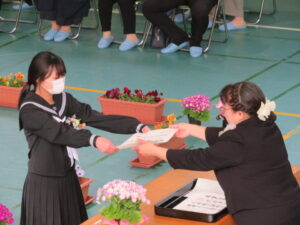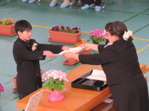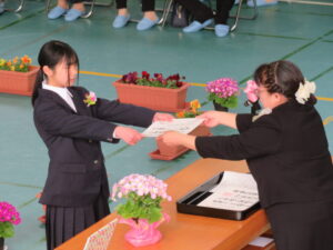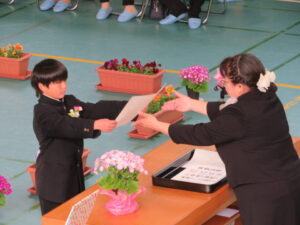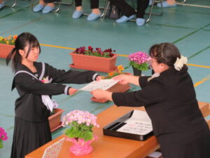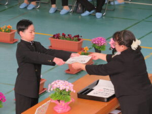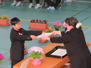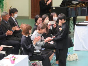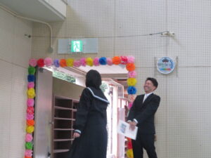 PTA会長さんから祝品をいただきました。