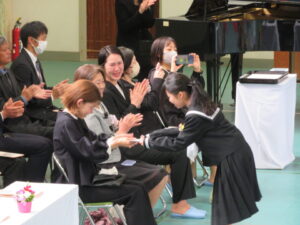 在校生から感謝の言葉と歌「ビリーブ」