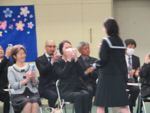 PTA会長さんからのお祝いの言葉。たくさんのお祝いの言葉に感謝です。