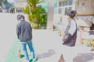 外回りの準備です。葉っぱも丁寧に掃除していました。