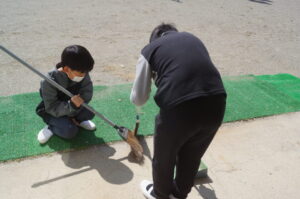 外回りの準備です。葉っぱも丁寧に掃除していました。