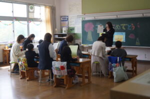 おうちの方と一所懸命お話をきく1年生の姿がありました。