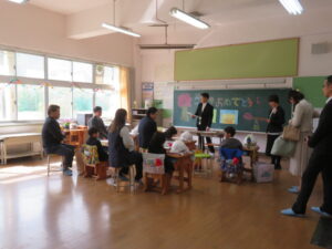 おうちの方と一所懸命お話をきく1年生の姿がありました。