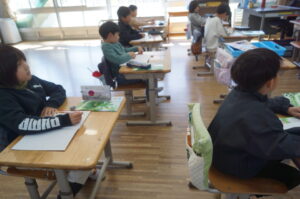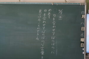 4年生は教科書の一番初めにある詩を何度か読み合わせしてから、先生の課題に答えていました、