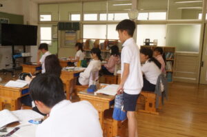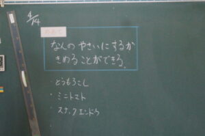 どんな野菜を育てるかを話し合いました。みんなでミニトマト、オクラ、ピーマンの中から一人一つを選んで育てることになりました。