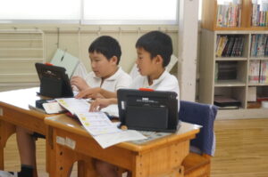 名前を使って自己紹介をタブレットを使って考えました。