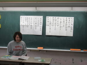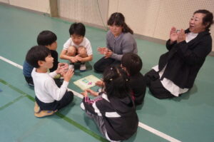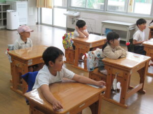校歌の練習やいぬのおまわりさん、めだかのがっこうなど童謡を聞いたり歌ったりしました。