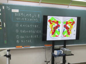 絵の具を5色だけ使って、カラフルな「まぼろしのちょう」を描きました。
