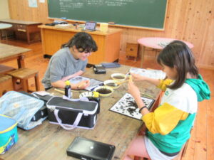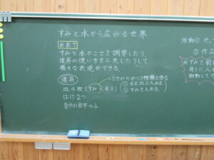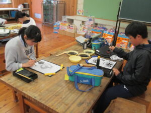 墨と水を混ぜて濃淡を作り、絵を描いて様々に表現をしました。
